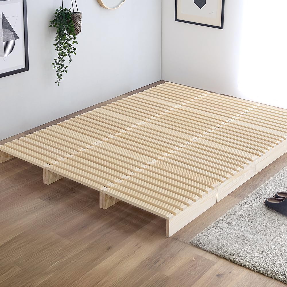 You can freely arrange your durable palette according to your needs. This palette bed is made of natural solid pine wood. Not only can it be used as a slatted sheet, but it can also be arranged or stacked to match the layout of a shelf or table. By applying step differences on both sides of the pallet, it is easy to stack and does not slip. It also comes with dedicated connecting hardware for both vertical and horizontal dimensions, so it can be firmly secured to prevent the pallet from variation. When not in use, it can be stacked to save space. Set Contents: 8 pieces Product Size (per piece) Width 19.7 x Depth 19.7 x Height 5.1 inches (50 x 50 x 13 cm) (with felt to prevent floor scratching, approx. 5.3 inches (13.3Product weight (per sheet) Approximately 10.9 lbs (4.78 kg). Slatted size: Slate width: approx. 1.7 inches (4.3 cm), slate thickness: approx. 0.7 inches (18 mm), slate spacing: approx. 1.0 inches (2.5 cm). Materials: Body: Natural Nordic Pine Solid Coupling fitting: Steel (powder coated). Load capacity (per sheet). Approx. 220.5 lbs (100Accessories (per pallet) 4 x felt for floor scratching, 3 x vertical couplers, 3 x horizontal coupling hardware