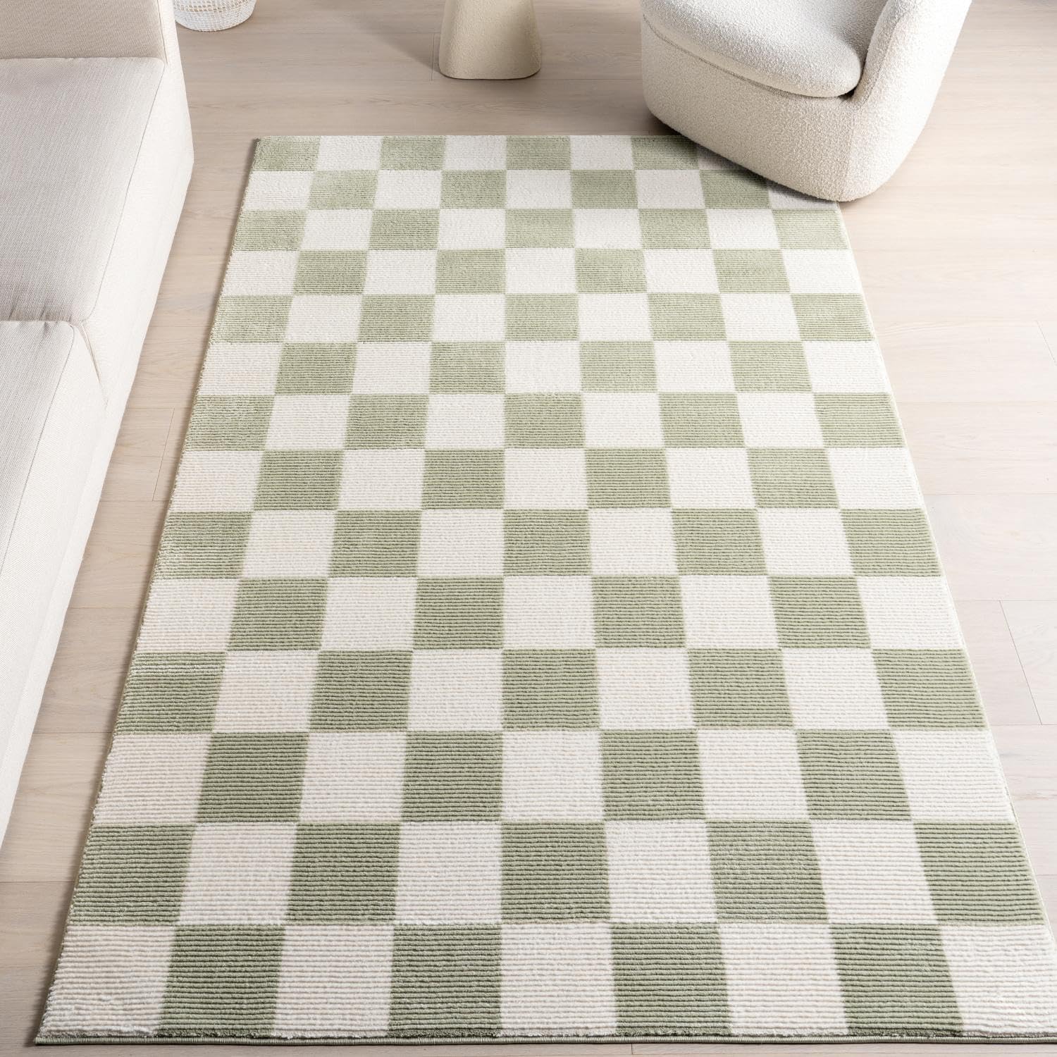 Upgrade your décor with this soft yet resilient rug that ticks all the boxes of style and functionality of our area rug. Crafted with convenience in mind, this rug is machine washable, ensuring easy maintenance for busy households. Its durable construction, featuring 100% PET polyester, makes it both kid and pet-friendly, while also boasting stain resistance for added peace of mind. With a contemporary checkered design, this rug effortlessly enhances any modern space, whether it's a living room, bedroom, or office. Engineered with precision through machine-made, power-loomed techniques, it promises not just style, but enduring quality.