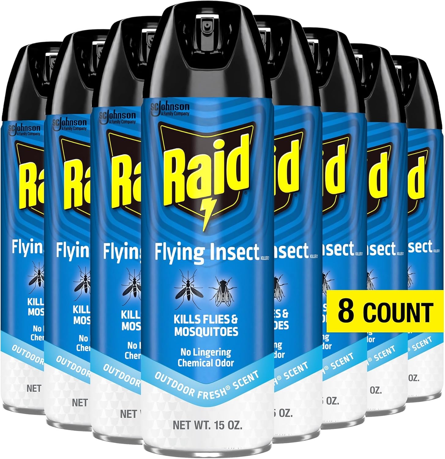 From the Manufacturer Raid Flying Insect Killer is designed to kill flies, mosquitoes, and other flying insects while providing effective indoor and outdoor insect control for living spaces, patios, and outdoor areas. This aerosol insect spray delivers fast acting performance with a fresh outdoor scent and is formulated to leave no lingering chemical odor when used as directed. The spray targets flying insects in kitchens, rooms, porches, garages, and outdoor living areas, making it suitable for everyday household and outdoor use. Each 15 ounce can is easy to apply and ideal for spot treatment and general flying insect management. This pack of 2 provides convenient coverage for multiple areas or repeat use. Always follow label directions and ventilate treated areas before re entering.